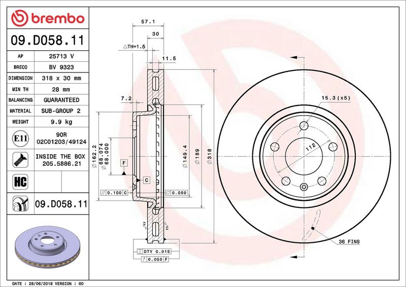 BREMBO 09.D058.11 - Disco de freno - PRIME LINE - UV Coated