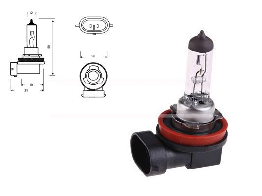 Tensión [V]: 12 Potencia nominal [W]: 55 Homologación: E4 Tipo de lámpara: H11 Tipo de luces: Halógena Cantidad: 1 Tipo de envase: caja Color lámpara: blanco Modelo de zócalo, bombilla incandescente: PGJ19-2