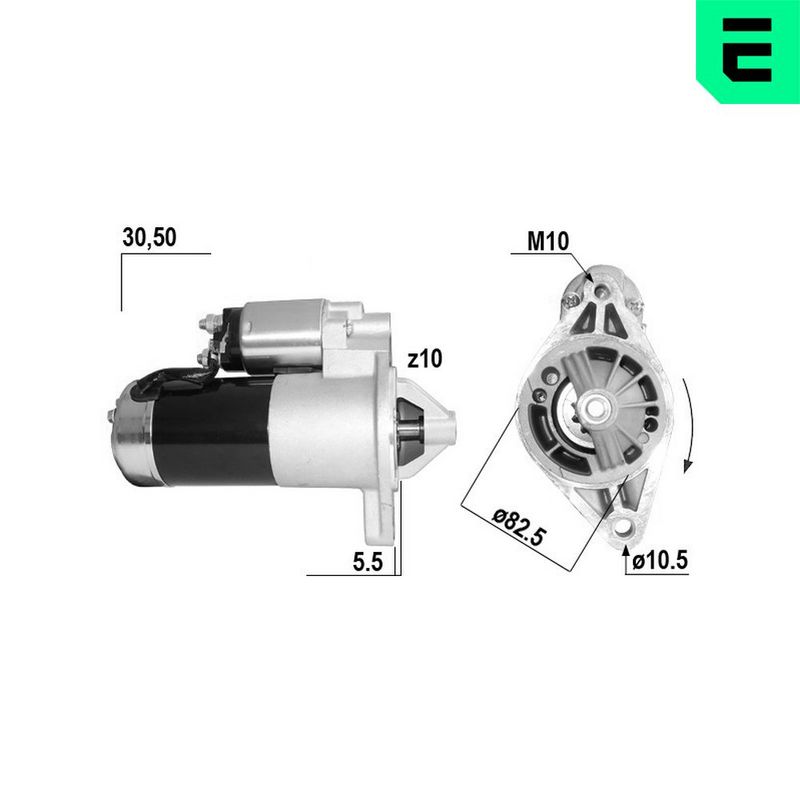 Tensión [V]: 12 Potencia nominal [kW]: 1,2 Número de dientes: 10 Longitud [mm]: 227,2 Pinza: M8 Sentido de giro: Sentido de giro a la derecha (horario) Diámetro de brida [mm]: 82 Cantidad de agujeros de fijación: 2